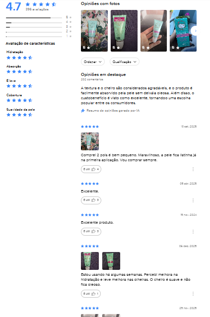 Tudo isso com uma textura leve, de rápida absorção e ideal para uso diário.